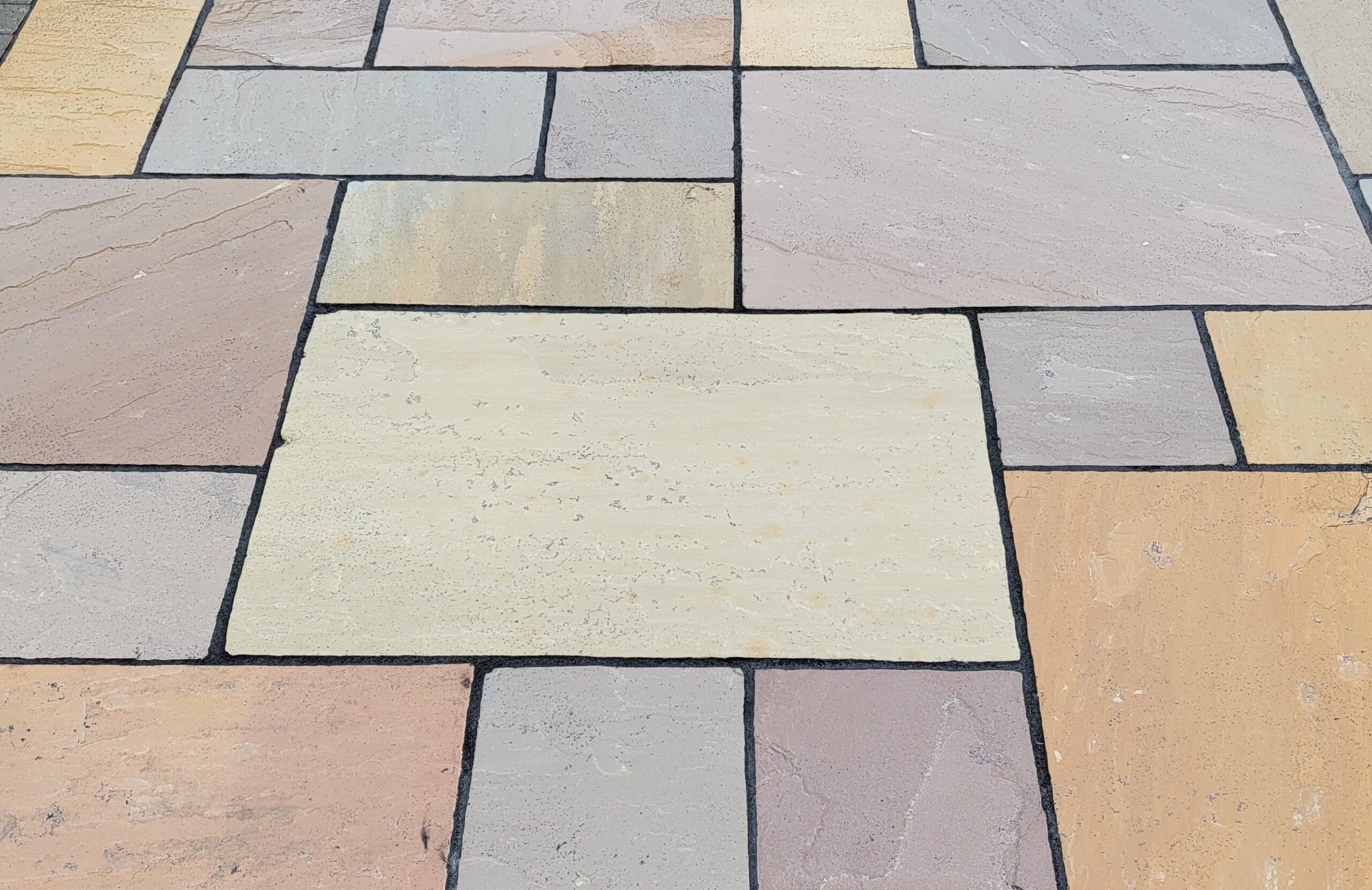 Predominantly light beige/silver tones, what makes this colour so striking is the combination of the natural pink and terracotta stripes and curves running throughout. Each individual stone is unique.